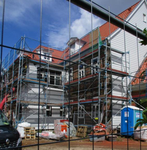 Das Haus Neue Sülze 3, eines der wenigen historischen Gebäude, die auf der westlichen Straßenseite noch vorhanden sind, wird derzeit zu Ferienwohnungen umgebaut. Wir thematisierten das zuletzt im Bericht des Vorstandes 2016. Wir gingen davon aus, dass nur das Äußere unter Denkmalschutz stände. Die Art und Weise des Umgangs mit den ausgebauten historischen Baumaterialien schien die Annahme zu stützen. Laut Unterer Denkmalbehörde ist es indessen so, dass dieser Schutz für das Gebäude in seiner Gesamtheit gilt, insbesondere für die Treppe, die hölzernen Wandbekleidungen und Türen. Der Behörde obliegt dem gemäß die Überwachung der tiefgreifenden Umbaumaßnahme, einschließlich der Verhinderung von Schäden an dem daneben liegenden Baudenkmal. Nach wie vor bedauern wir die Gewalt, die diesem ehemaligen Patrizierhaus durch den Einbau von vierzehn Ferienwohnungen angetan wird. Angesichts der zahllosen nutzungsbedingten Eingriffe in die Substanz war das zu erwarten. Diesem Baudenkmal angemessen wäre der Umbau zu zwei oder drei Wohnungen gewesen. Und das rückwärtige Gartengelände würde nicht vierzehn PKW – Stellplätze zu verkraften haben.