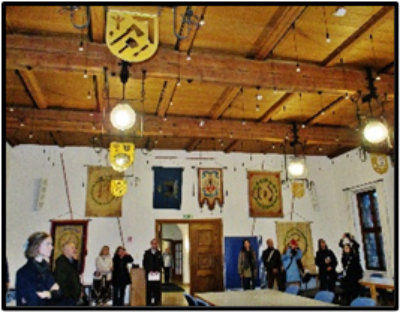 Mitte Oktober durfte ich als Gast an einigen Veranstaltungen der Tagung AG Inventarisierung der Nieders. Landesbehörde für Denkmalschutz in Lüneburg teilnehmen. Bei einer Führung zur Stadtgeschichte besuchten wir u. a. die Handwerkskammer an der Friedensstraße, die jetzt auch unter Denkmalschutz steht. Das war sehr interessant. Im ganzen Gebäude war die Handwerkskunst der Mitglieder sichtbar. Besondere Schmiedearbeiten (rechts Foto), schöne Parkettböden und im Versammlungsraum Wappen und Embleme der einzelnen Zünfte (links). Bei der Hausführung wurde auch die Zeit der Nationalsozialisten nicht ausgespart. Unter dem Gebäude befindet sich ein großer Luftschutzbunker. Eine anrüchige Gepflogenheit gab es früher im kleinen Sitzungssaal: Bevor das Rauchverbot in öffentlichen Räumen erlassen wurde, reichte man Zigarren zu den Zusammenkünften. Der Qualm soll so dick gewesen sein, dass man kaum die gegenüberliegende Seite erkennen konnte. Selbstverständlich tagten hier nur Männer…