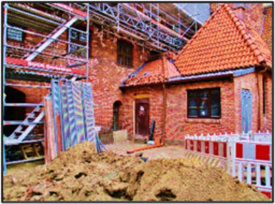 Viele, die ein renovierungsbedürftiges historisches Haus gekauft haben, können ein Lied davon singen, was an unvorhergesehenen Überraschungen die ursprünglichen Pläne verzögert: Da dringt Wasser in den Keller ein oder unter der Putzschicht befinden sich Deckenmalereien, das Haus ist viel älter als gedacht, die Balken sind morsch, das Dach undicht, Handwerker springen ab, das Geld reicht nicht. Und aus vielleicht 3 Jahren geplan-ter Renovierungszeit werden dann schnell 5-7 Jahre, wie z. B. am Johann-Sebastian-Bach-Platz. Nachbarn und Freunde trösten und ermutigen zum Durchhalten.